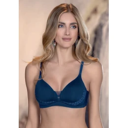 Dámská podprsenka Leilieve v elegantní tmavě modré barvě nabízí pohodlný střih s jemně vyztuženými košíčky, které přirozeně vytvarují dekolt. Boční kostice zajišťují lepší oporu a stabilitu během celého dne. Decentní krajkový detail působí žensky a dodává modelu na eleganci. Ramínka jsou délkově nastavitelná a obvod se zapíná na dva háčky se čtyřmi pozicemi pro perfektní přizpůsobení. Ideální volba pro ženy, které hledají komfort a zároveň krásný, nadčasový vzhled.