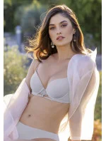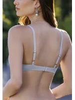 Dámská podprsenka Leilieve je elegantní součástí nové základní kolekce Desideri. Podprsenka má bezešvé vyztužené košíčky s kosticemi a díky pěnové výztuži košíčků vytváří hezký a neodolatelný dekolt. Odepínací, lehce délkově nastavitelná ramínka je možno na zádech zkřížit a použít pod různé typy halenek a šatů. Obvod je vespod lemovaný krajkou. Mezi košíčky je stříbrná aplikace písmena L. Zadní zapínání je na háček a čtyři pozice.