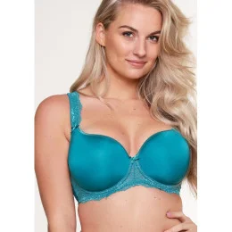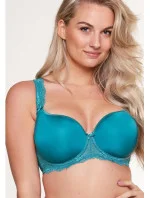 Dámská podprsenka od značky LingaDore. Podprsenka je pošitá látkou s jemným vzorem a košíčky podprsenky mají jemnou výztuž. Podprsenka má vyšší střed, ve středu dekoltu je aplikována jemná krajka v kombinaci se saténovou mašličkou. Ramínka podprsenky jsou širší a jsou zdobena krajkou. Nastavitelná ramínka jsou neodepínatelná. Zapínání podprsenky je na dva háčky na tři pozice.