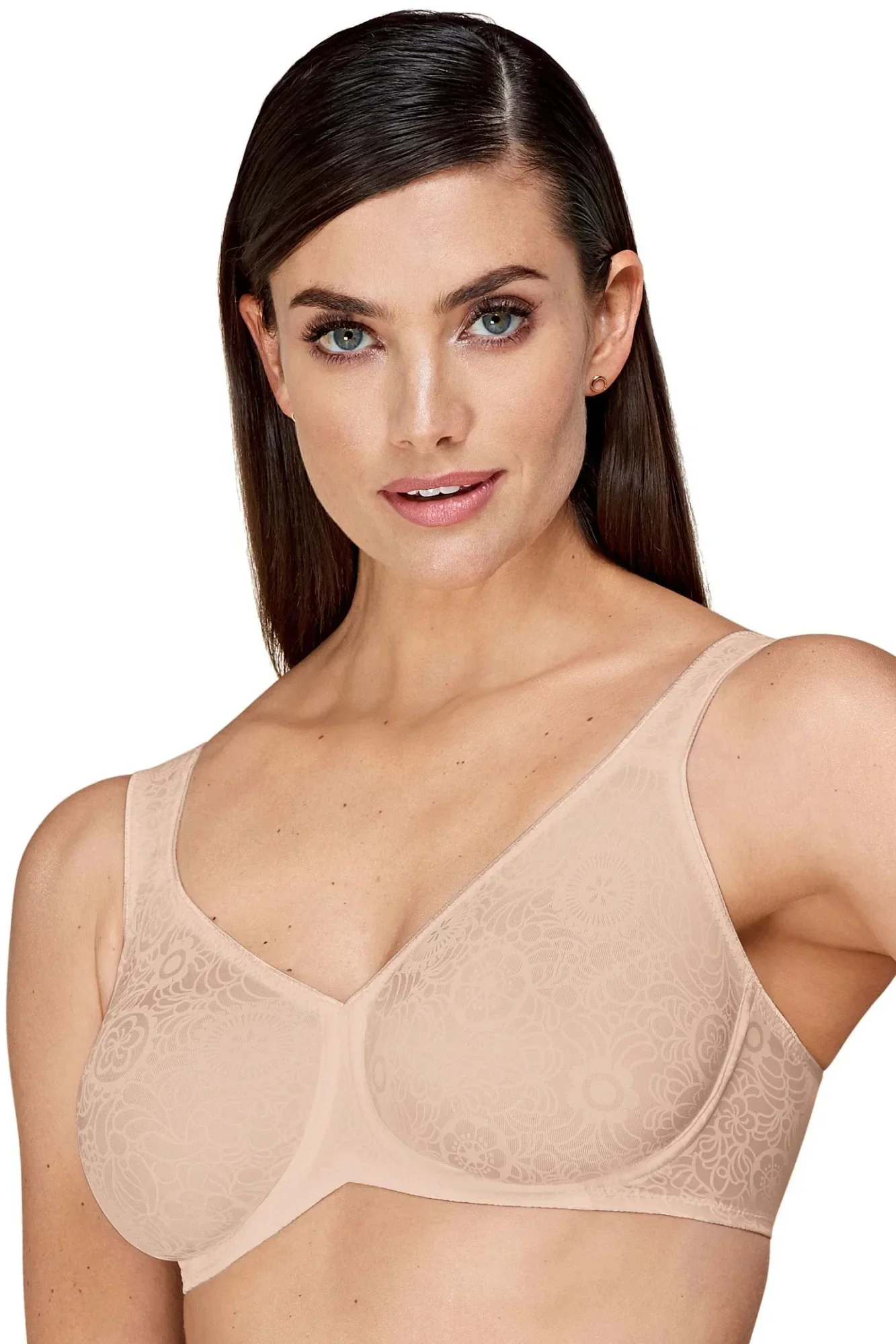 Dámská podprsenka Lovely minimizer WX beige Triumph - béžová barva - z hladkého materiálu - s květovaným vzorem - opticky zmenšuje velikost prsou až o jednu velikost košíčku - s kosticemi - nastavitelná ramínka - zapínání vzadu