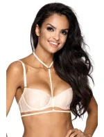 Podprsenka, která svým střihem balkonetky na první pohled zaujme. Je ozdobena jemným saténem s velmi decentním vzorem. Košíčky dělí svislý šev. Díky tomuto střihu jsou ňadra krásně přizvednutá a vyexponována. Balkonetka nechává vyniknout vrchní linii ňader, kterou elegantně odhaluje.