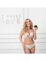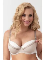 Podprsenka je ideální pro ženy s menším a středně velkým poprsím. Model je vyrobený z hladkého mikrovlákna v kontrastních pastelových béžových barvách. Podprsenka dokonale nadnáší poprsí a dodává mu pěkný tvar. Košíčky jsou vytvarované jemnými certifikovanými kosticemi. Díky speciálnímu střihu není potřeba podprsenku při kojení svlékat. Díky zapínání typu Quick-Click je možné odepnout a zapnout košíčky jednou rukou. Košíčky jsou uvnitř pokryté 100 % bavlnou s antibakteriální úpravou. Model má čtyřstupňové zapínání. Délku ramínek je možné nastavit.