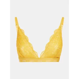 Úžasná bralette podprsenka značky Guess, v hořčicové barvě, doplněna o lemování s tištěným logem. Zajistí naprostý komfort a dokonalý vzhled.