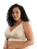 Novinková braletka ADRIANA od americké značky PARFAIT. Krajková braletka je velmi dlouho očekávanou reakcí na obrovský trend krajek, romanticky svůdného designu a přirozenosti, kdy americký PARFAIT konečně přichází s tímto krásným kouskem prádla i pro větší a velká prsa. Braletka má dostačně široký obvod, ramínka i vyšší střed, díky čemuž spolehlivě drží i ve větších velikostech. Ramínka jsou nastavitelná a můžeme je vzadu spojit do kříže. Obvod je zapínatelný na 4 háčky ve třech řadách. Košíček je střižen ze dvou částí, není vyztužen kosticemi, pouze jemným podšitím a vytváří poprsí pevnější a přirozený tvar, který je v dekoltové části zakončen lemem krajky vytříbeného vzoru ústícím až do ramínek.