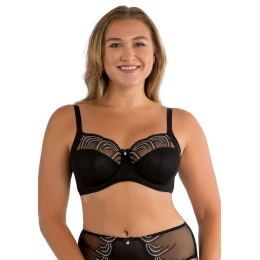Luxusní podprsenka Parfait Pearl v černé barvě okouzlí svým elegantním designem a precizním zpracováním. Nevyztužené tříčtvrteční košíčky s kosticemi kombinují jemnou síťovinu s vyšívaným vzorem připomínajícím perlové obloučky, které krásně zvýrazňují dekolt. Střed mezi košíčky zdobí drobná mašlička s kamínkem pro extra šmrnc. Nastavitelná ramínka a zapínání na zádech zajišťují pohodlné nošení a dokonalé přizpůsobení postavě. Ideální volba pro ženy, které chtějí spojit smyslnost, oporu a výjimečný vzhled.