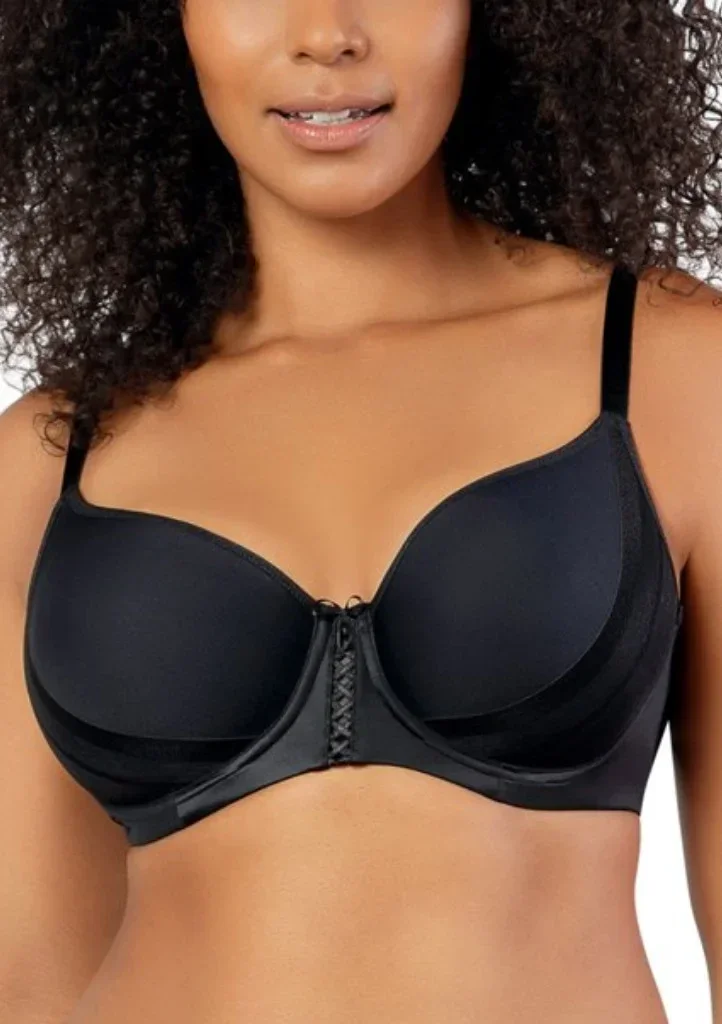 Dámská podprsenka od americké značky Parfait. Podprsenka má jemně vyztužené košíčky s všitou poloviční podšívkou na podporu prsou. Vnější část košíčků zdobí jemná krajka a střed všitá šňůrka. Ramínka jsou pevně všitá, nastavitelná. Zapínání je na 2 háčky a 3 pozice.