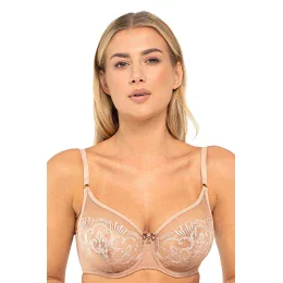 Dámská podprsenka Perla A143 cappucino Samanta - cappucino barva - typ soft - z výšivky s květinovým motivem - košíčky podšité hladkým tylem - s kosticemi - nastavitelná a neodepínatelná ramínka - zapínání na dva háčky s třístupňovým zapínáním - certifikát Oeko-Tex STANDARD 100®