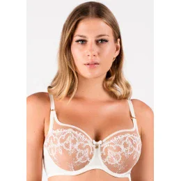 Dámská podprsenka Perla A143 cream Samanta - krémová barva - typ soft - z výšivky s květinovým motivem - košíčky podšité hladkým tylem - s kosticemi - nastavitelná a neodepínatelná ramínka - zapínání na dva háčky s třístupňovým zapínáním - certifikát Oeko-Tex STANDARD 100®