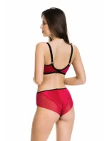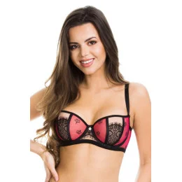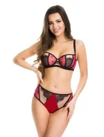 Podprsenka je určená odvážným ženám, které dokáží ocenit jak pohodlí, tak i netypický vzhled modelu. Košíčky mají svislé švy ozdobené saténovou páskou, která odděluje vsadky z černé krajky a malinové síťoviny s aplikací ve tvaru krajky s vícebarevnou přízí. Konstrukce modelu je vhodná pro ženy se středně velkým poprsím, protože poprsí pěkně nadnáší a zvýrazňuje dekolt. Můstek je ušitý ze stabilní síťoviny. Zadní díly modelu tvoří červené mikrovlákno. Boky modelu jsou zpevněné svislými kosticemi. Ramínka je možné nastavit. Šířka ramínek závisí na velikosti a rozměru košíčků a obvodu, a proto je podprsenka při nošení pohodlná. Krajka a doplňky jsou vyrobené z velmi kvalitních francouzských materiálů.