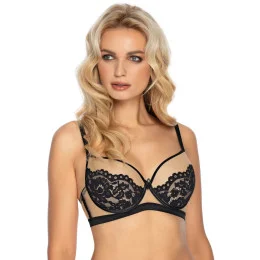 Dámská podprsenka Torfi push up black ROZA - černá barva - typ push up - kombinace béžové látky a krajky