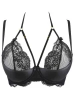 Úžasná, svůdná černá podprsenka peek-a-boo upoutá pozornost strukturou látky - jemnou krajkou s příjemným povrchem a neodnímatelnou mašlí mezi košíčky. Ramínka jsou nastavitelná, ale neodnímatelná, zapínání na dva háčky. . Žádné boční kostice, žádné výplně košíčků.