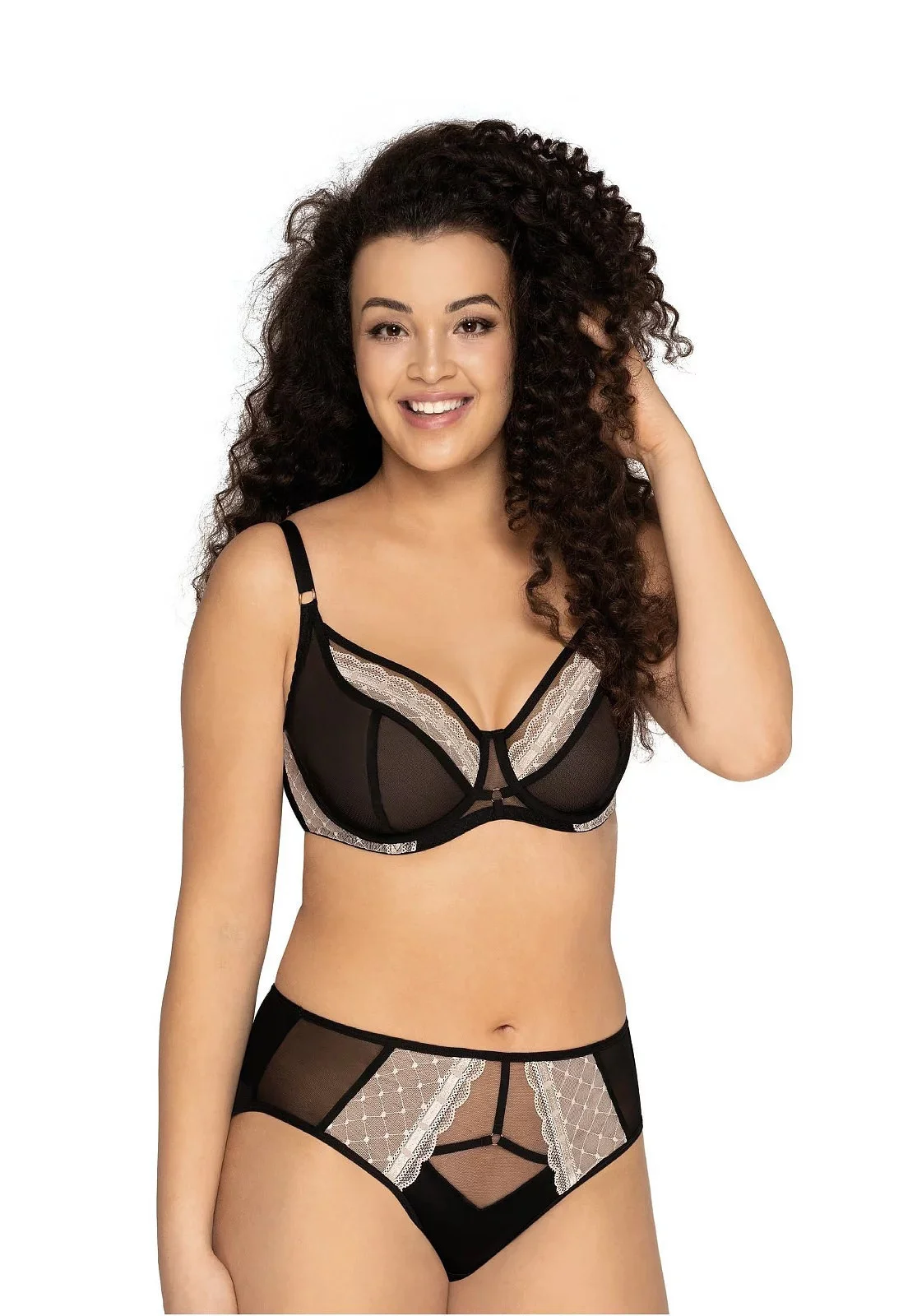 Podprsenka je vyrobená ze síťoviny a krajky. Košíčky s kosticemi jsou do poloviny vyztužené a uvnitř jsou pokryté bavlnou. V místě spojení košíčků jsou ozdobné pásky. Obvod modelu je ušitý z pružné lycrové tkaniny, která se při nošení nevytahuje. Ramínka je možné nastavit, ale nelze je odepnout. Podprsenka má střih a konstrukci typu 925.