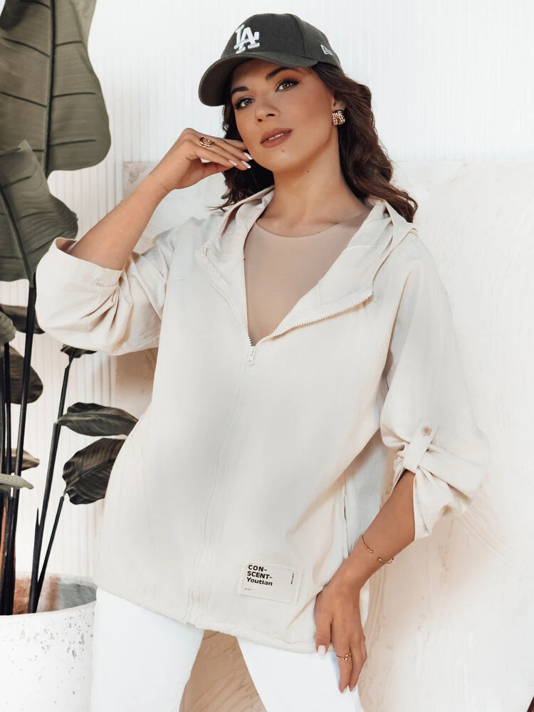 Bunda MANDIA je lehkou a stylovou volbou pro každou ženu, která ocení módní vzhled a pohodlí. Její volný střih zaručuje volnost pohybu, zatímco praktická kapuce chrání před jarními rozmary počasí. Má zapínání na zip a stylovou nášivku. 3/4 rukávy s možností rozepnutí jsou ideální pro teplejší dny a dávají vám svobodu přizpůsobit se vlastnímu stylu.