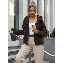 Dámská přechodná bunda s kapucí a kapsami hnědá FashionStreet TY5637