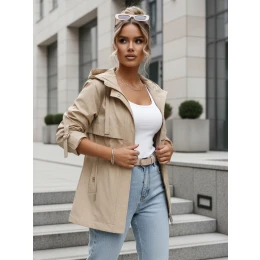 Dámská přechodná bunda s kapucí v kamelové barvě FashionStreet TY5627