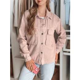 Ležérní dámská bunda ideální pro přechodné období se zapínáním na knoflíky, klasickým límcem a praktickými kapsami. Univerzální velikost je vhodná pro velikosti XS až L. Zdobí ji decentní motiv hvězdiček, který jí dodává jedinečný nádech. Dobře se kombinuje s džínami i elegantními kalhotami a vytváří stylový vzhled.