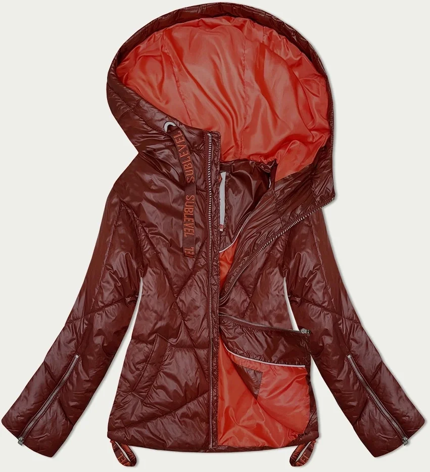 Dámská přechodná prošívaná bunda s kapucí tmavě červená (21300)