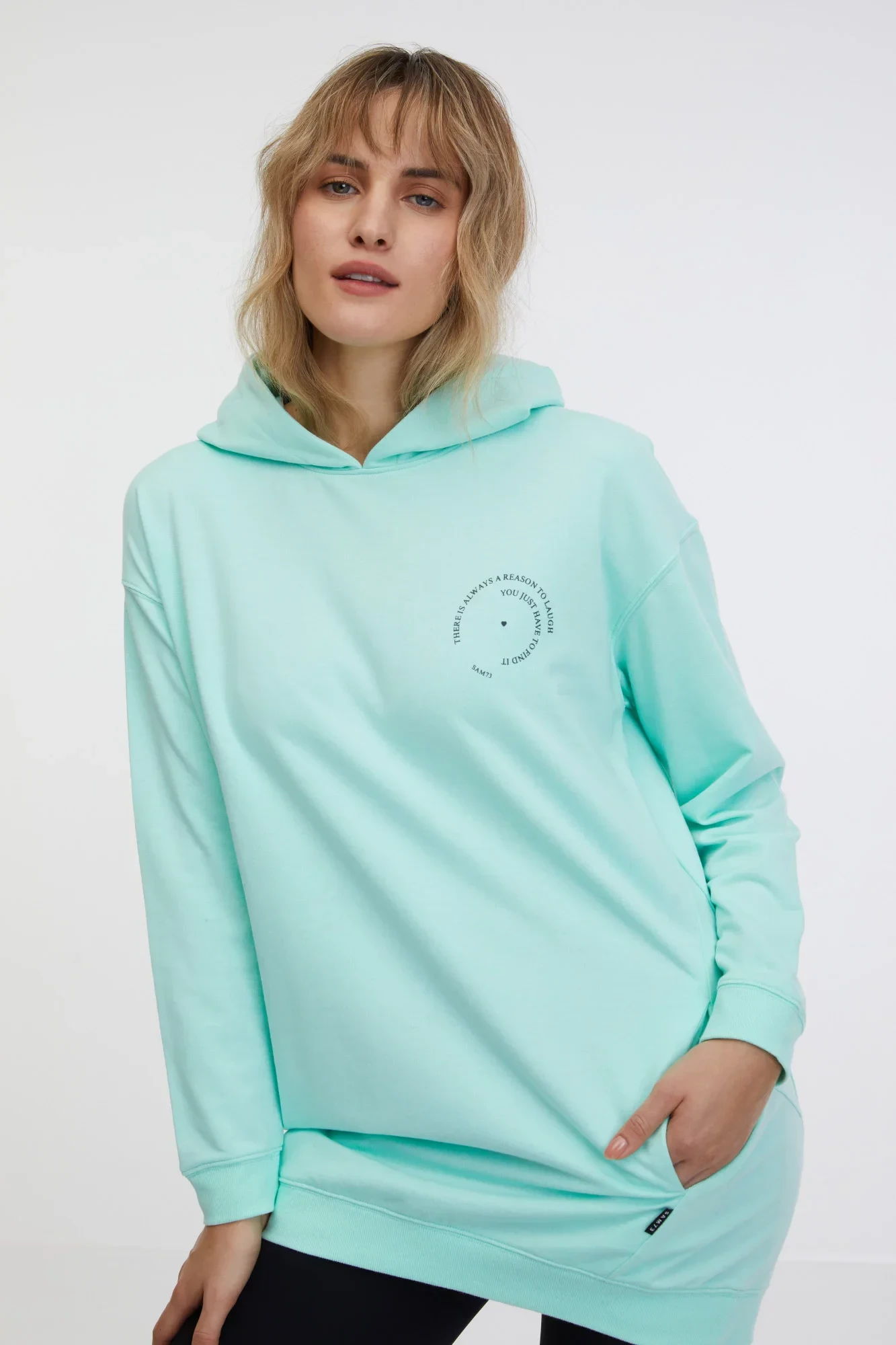 Stylová dámská mikina s kapucí s volným střihem a postranními kapsami.
