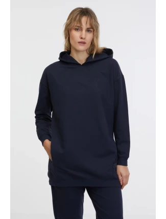 Stylová dámská mikina s kapucí s volným střihem a postranními kapsami.
