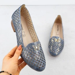 Dámská prolamovaná obuv na nízkém podpatku modrá M.Daszynski SA222-3