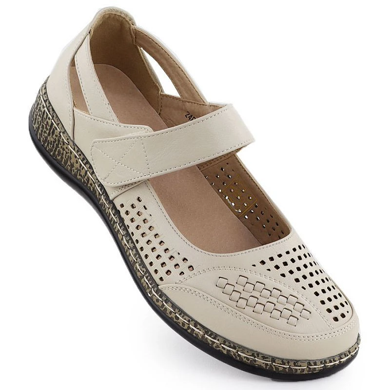 Dámská prolamovaná obuv na suchý zip béžová Unisoft 7026