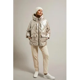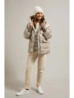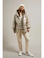 Lesklá béžová dámská prošívaná bunda (N-6107-63)