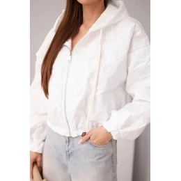 Dámská prošívaná bunda s kapucí a ozdobným květinovým ražením bílá