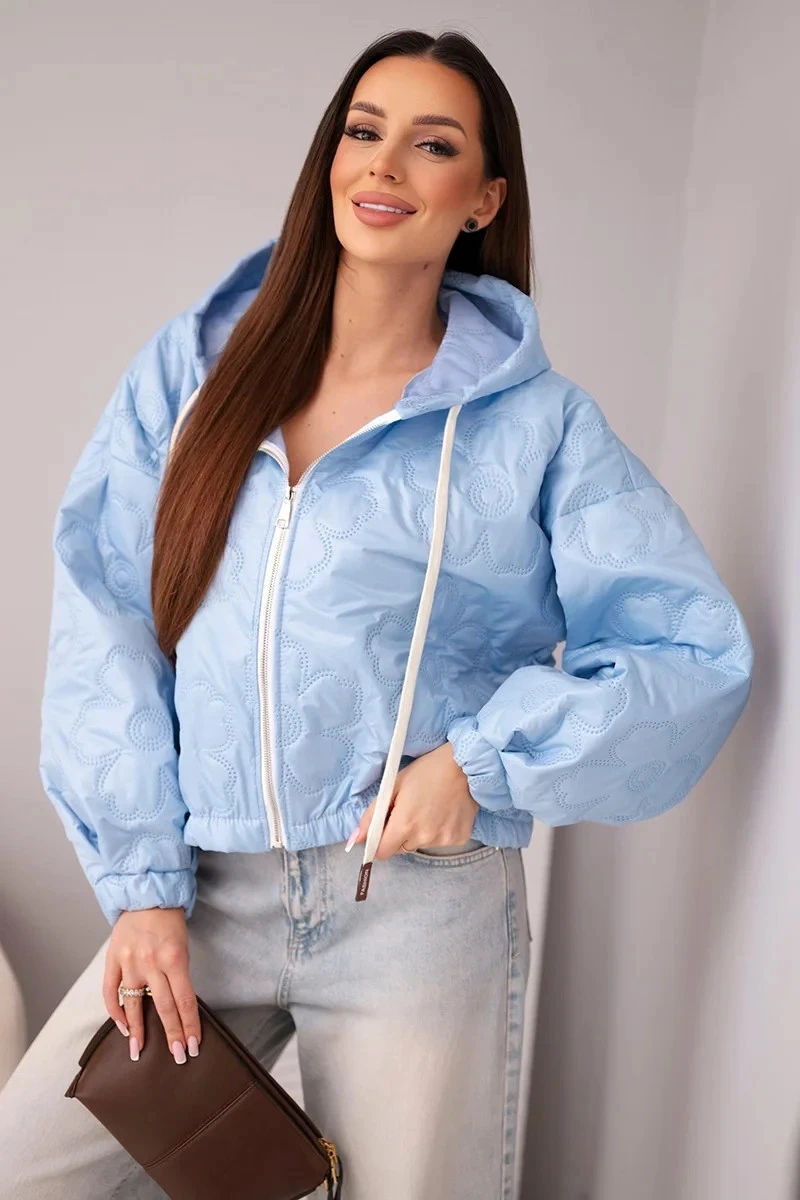 - Prošívaná dámská bunda s ozdobným ražením květin