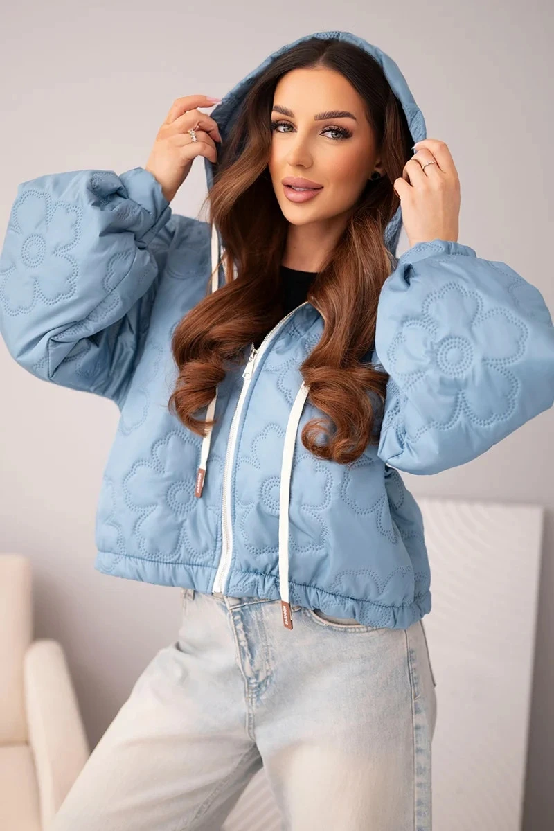 - Prošívaná dámská bunda s ozdobným ražením květin