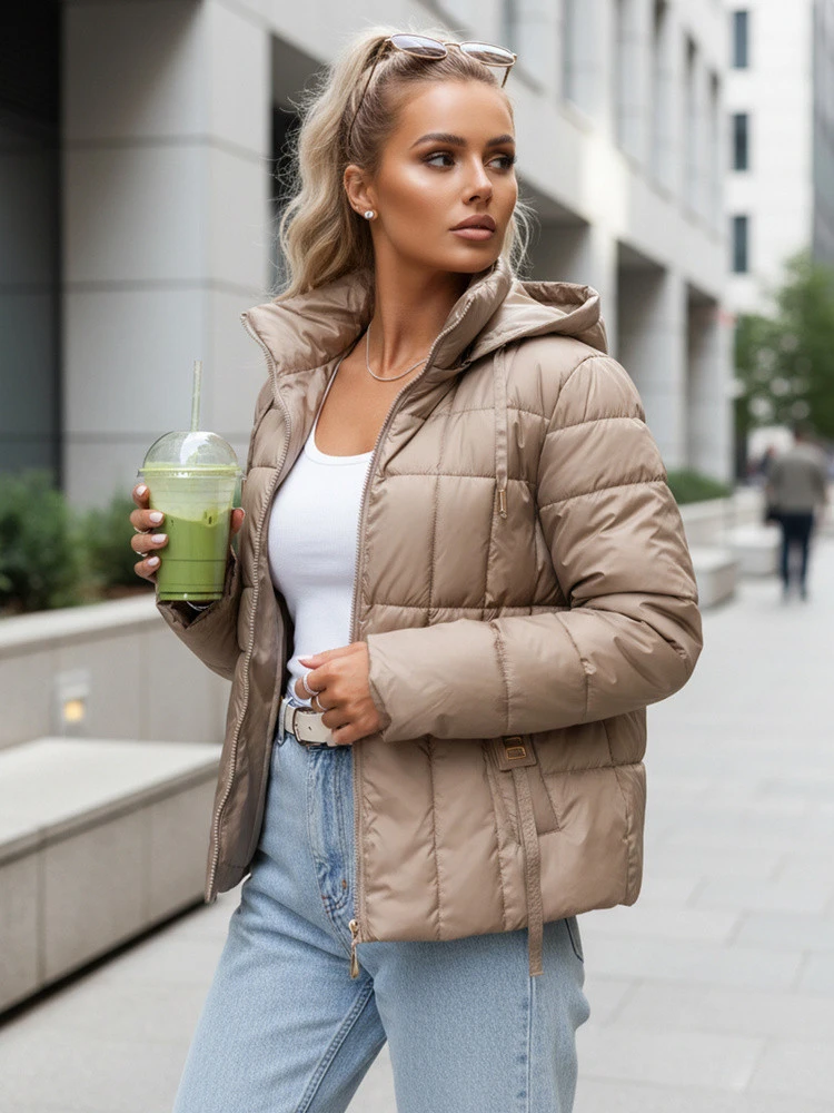 Dámská prošívaná bunda s kapucí béžová FashionStreet TY5585