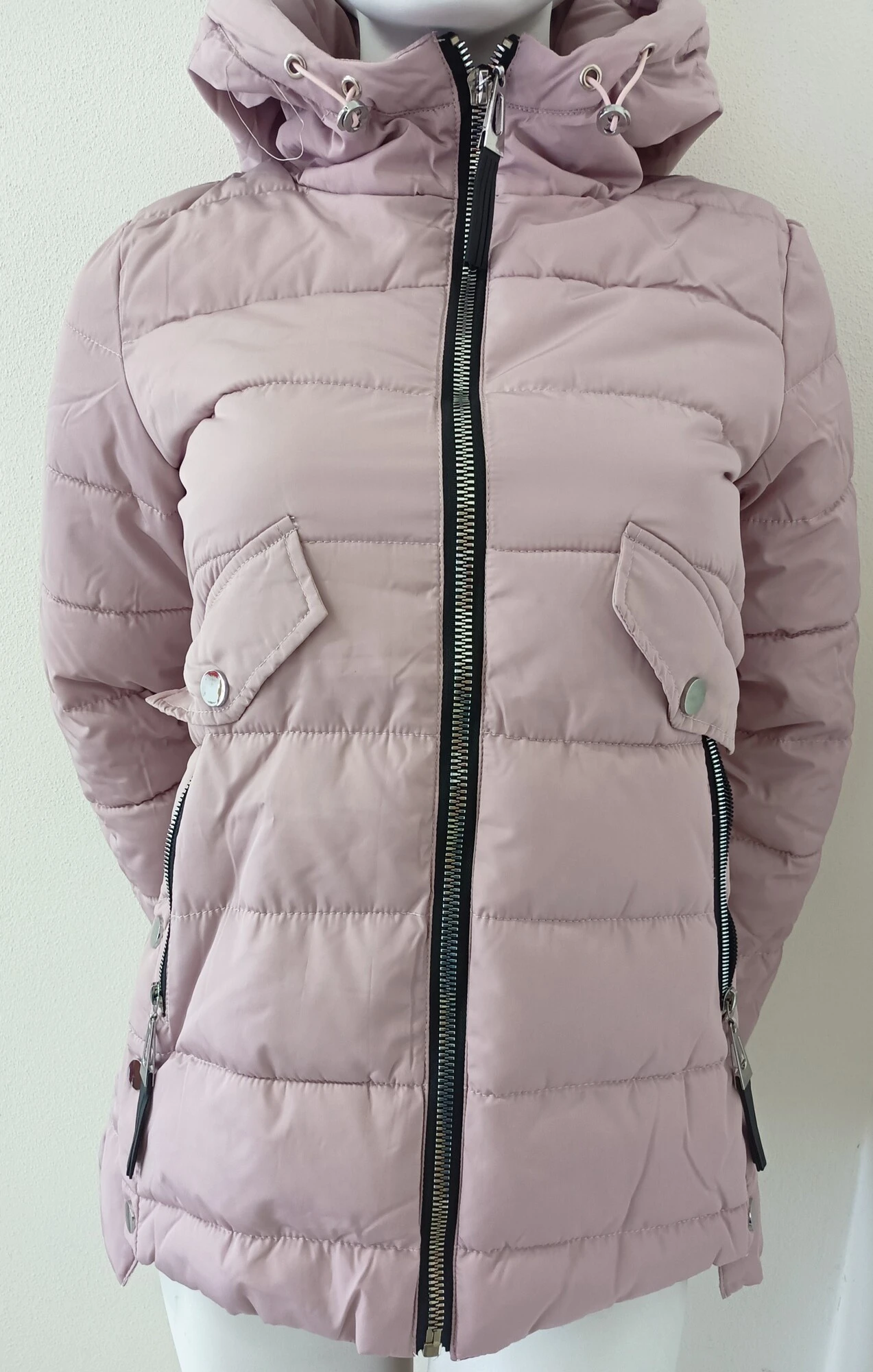Dámská prošívaná zimní bunda střední délky, s neodepínací kapucí.