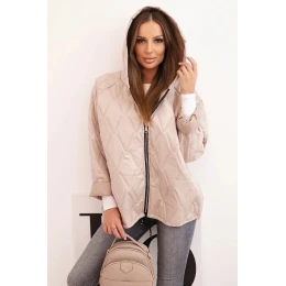 Dámská prošívaná bunda s kapucí tmavě béžová