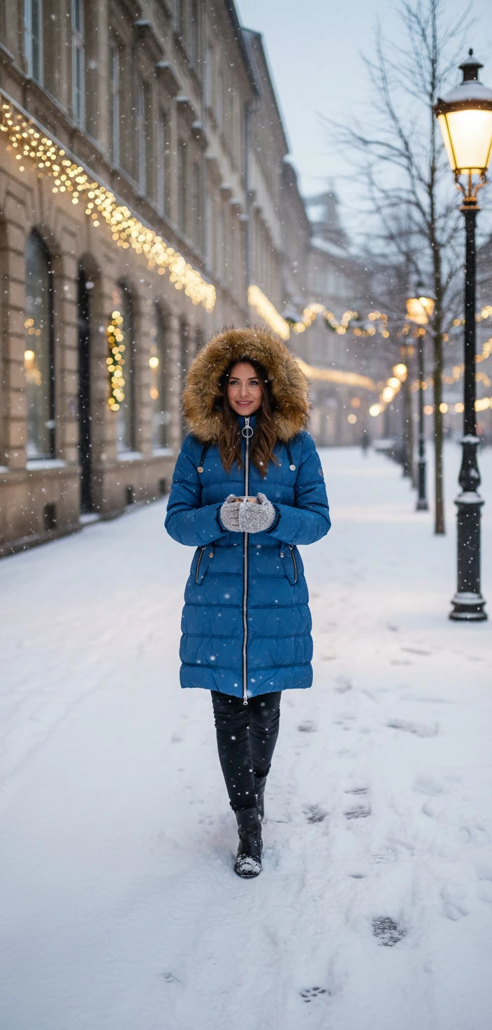 Dámská prošívaná zimní dlouhá bunda s odepínací kapucí.