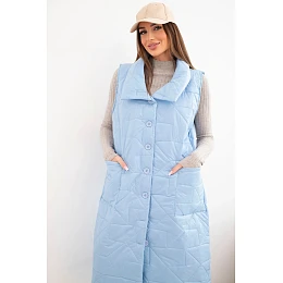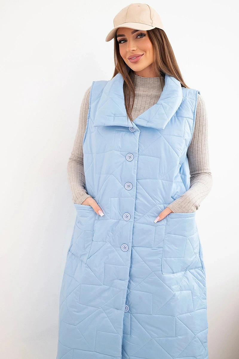 Dámská prošívaná dlouhá vesta s kapsami a stojáčkem modrá