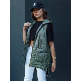 Dámská prošívaná dlouhá vesta s kapucí JESS zelená FashionStreet TY4442
