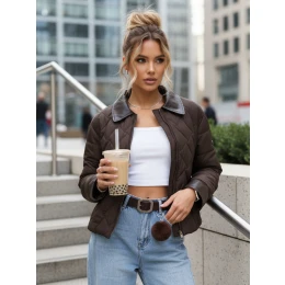 Dámská prošívaná hnědá přechodová bunda FashionStreet TY5619