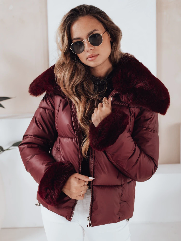 Dámská prošívaná krátká bunda s vínovou kožešinou FashionStreet TY5071