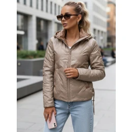 Dámská prošívaná lehce zateplená bunda s kapucí taupe TY5633