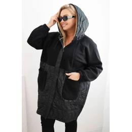 Dámská prošívaná mikina Plus Size s kapucí a velkými kapsami černá