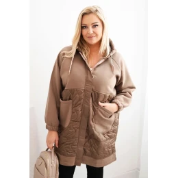 Dámská prošívaná mikina Plus Size s kapucí a velkými kapsami fango