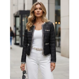 Dámská bunda s lehkou prošívanou konstrukcí navržená jako univerzální přechodový oděv. Jednoduchý střih byl doplněn ozdobnými lemy, které celku dodávají strukturovaný a elegantní charakter. Lehká vrstva zateplení poskytuje pohodlí v chladnějších dnech, aniž by příliš zatěžovala siluetu. Model se dobře uplatní v každodenních i rafinovanějších stylizacích.