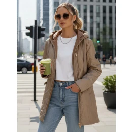 Tato dámská přechodná bunda s kapucí je ideální do proměnlivého počasí i na každodenní vycházky. Prošívaná konstrukce vám pomůže udržet tepelný komfort, zatímco zip po celé délce usnadňuje rychlé oblékání. Delší střih chrání vaši siluetu a dobře se kombinuje s ležérním oblečením. Kapsy umožňují pohodlné uložení drobných předmětů.