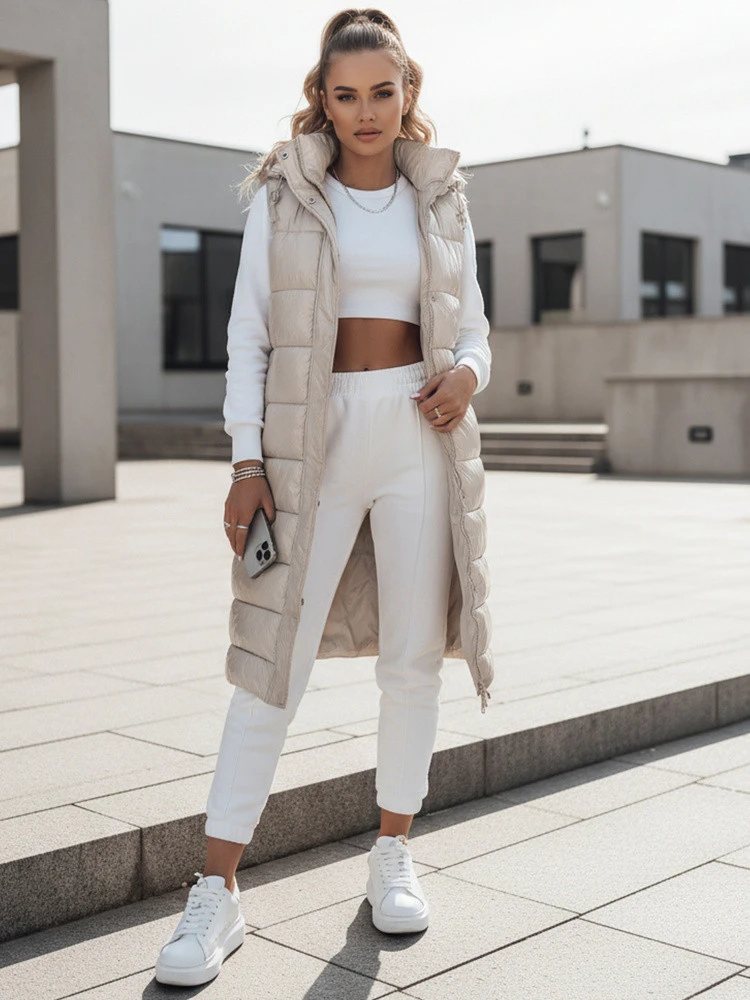 Vesta se dobře kombinuje s legínami, džínami a tepláky pro pohodlný každodenní vzhled a lze ji nosit přes mikinu, svetr nebo vypasovanou halenku s dlouhým rukávem podle teploty.