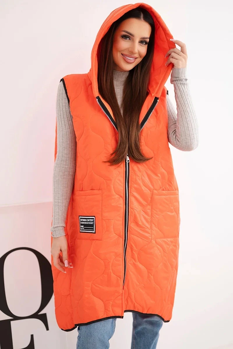 Dámská prošívaná vesta Plus Size s kapucí na zip oranžová