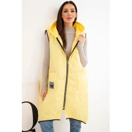 Dámská prošívaná vesta Plus Size s kapucí na zip žlutá