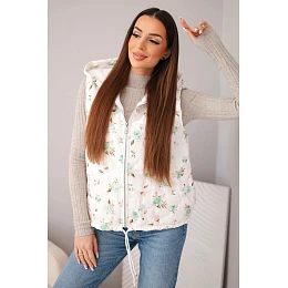Dámská prošívaná vesta s kapucí a květinovým vzorem mátová