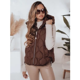 Dámská prošívaná vesta s kapucí MISSVEST hnědá FashionStreet TY5019