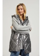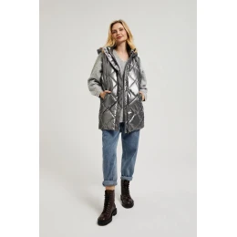 Stříbrná prošívaná dámská bunda s kapucí (B9562)
