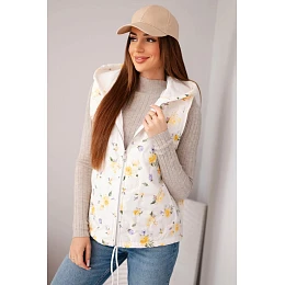 Dámská prošívaná vesta s kapucí s květinovým vzorem žlutá