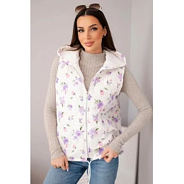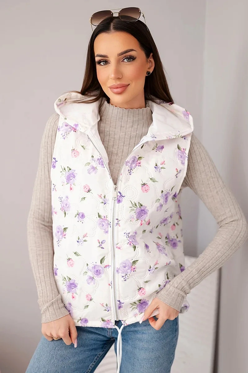 Dámská prošívaná vesta s květinami a kapucí fialová